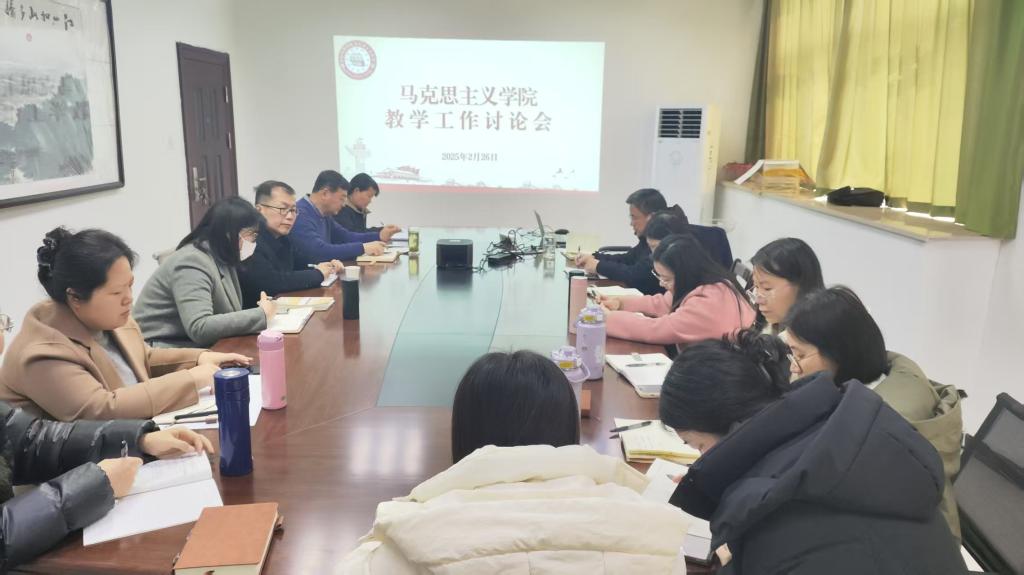 2025年2月26日下午,今年会在行政楼913会议室召开全体教师会议,深入学习学校2025年教学工作会议精神,进一步明确学院教学工作方向,提升思政课教学质量。学校党委书记参加了讨论会,会议由学院副院长曹卓主持,学院全体教师参会。