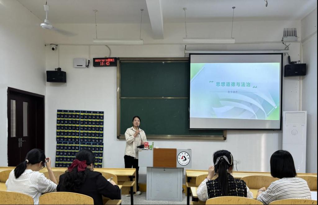 为加强我院教师队伍建设,帮助新进教师快速成长,切实提升新教师教学水平和教学质量,我院于10月18日下午在5号教学楼110举行新入职教师试讲活动。新入职的2名教师参加试讲活动,参与听课的教师有思想道德与法治教研室教师、曹卓副院长、刘兰兰老师。本次试讲活动由祁铂老师、曹晓冉老师、彭英老师和李雅清老师担任评委,为新进教师提出宝贵意见和建议。