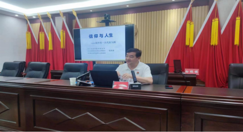 为庆祝中国共产党成立102周年,激励全镇党员干部弘扬伟大的建党精神,激发奋进动力,6月29日,省党史宣讲团成员、我校今年会院长毛传清教授受白鹤镇党委邀请,赴该镇给党员干部上了一堂“信仰与人生”专题党课。学校党委书记杨知勤、组织部副部长肖玉、驻村工作队,白鹤镇党委书记蔡建宇、党委副书记、镇长唐盛波、党员代表参加了本次讲座。